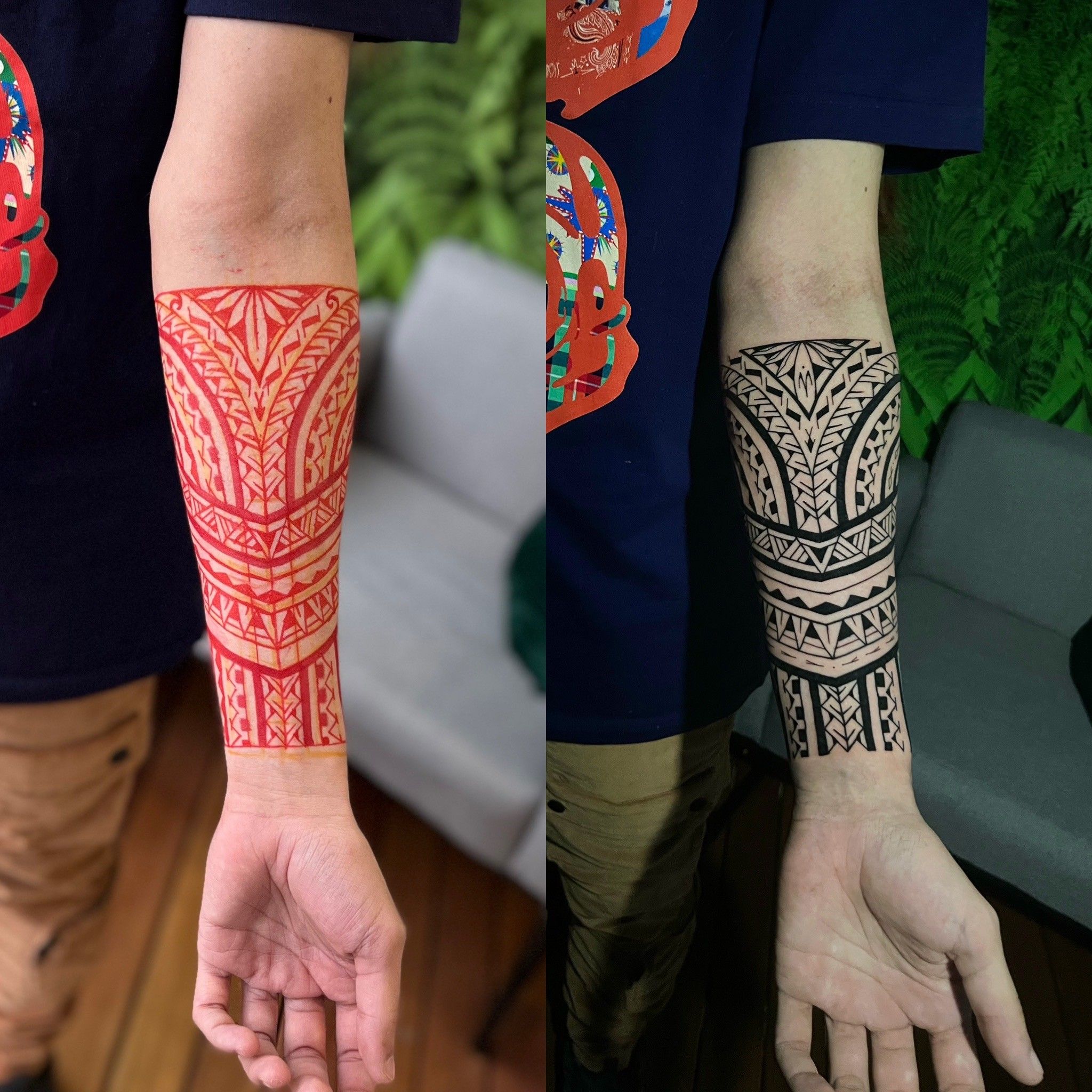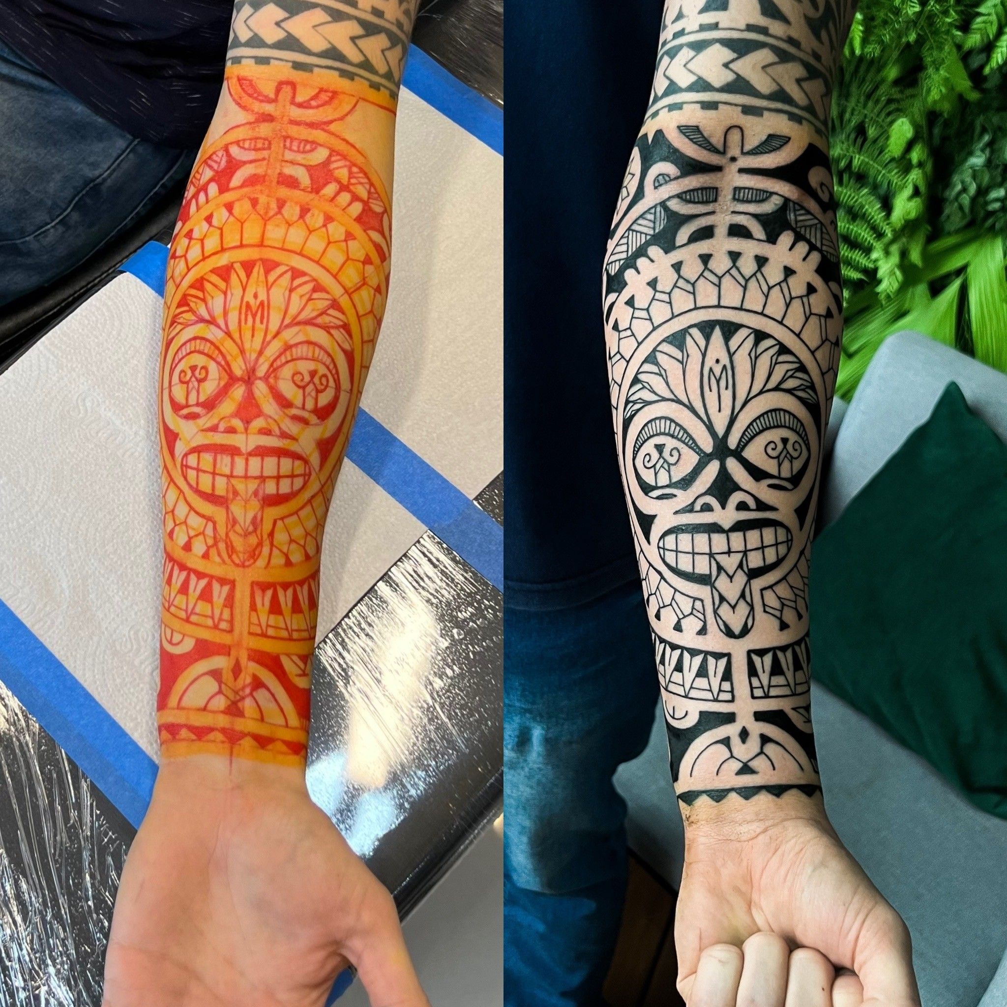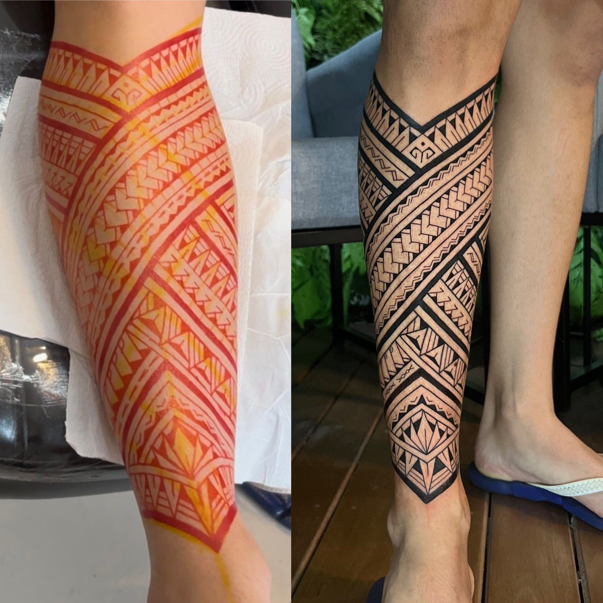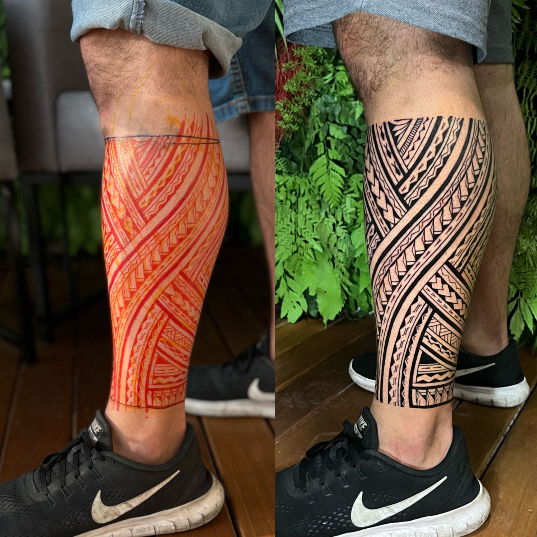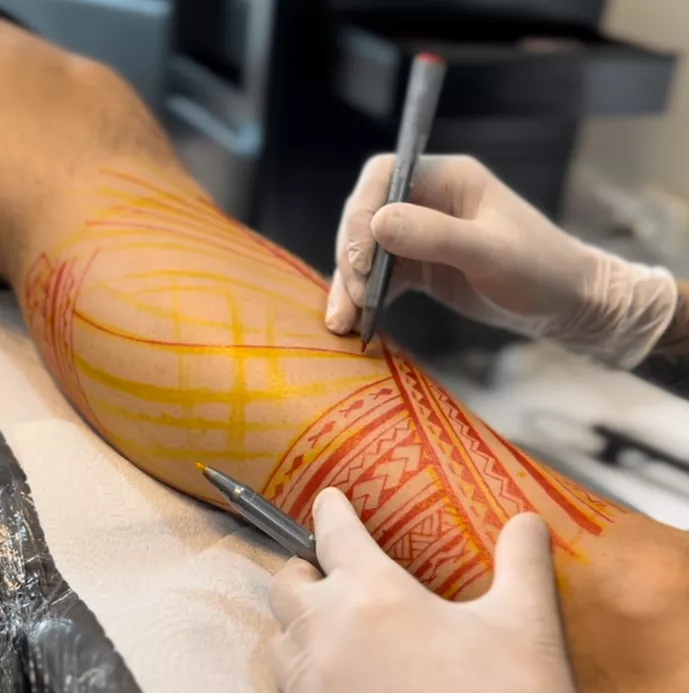 Desde a escolha de grafismos, estudo anatômico, freehand e execução da tatuagem.