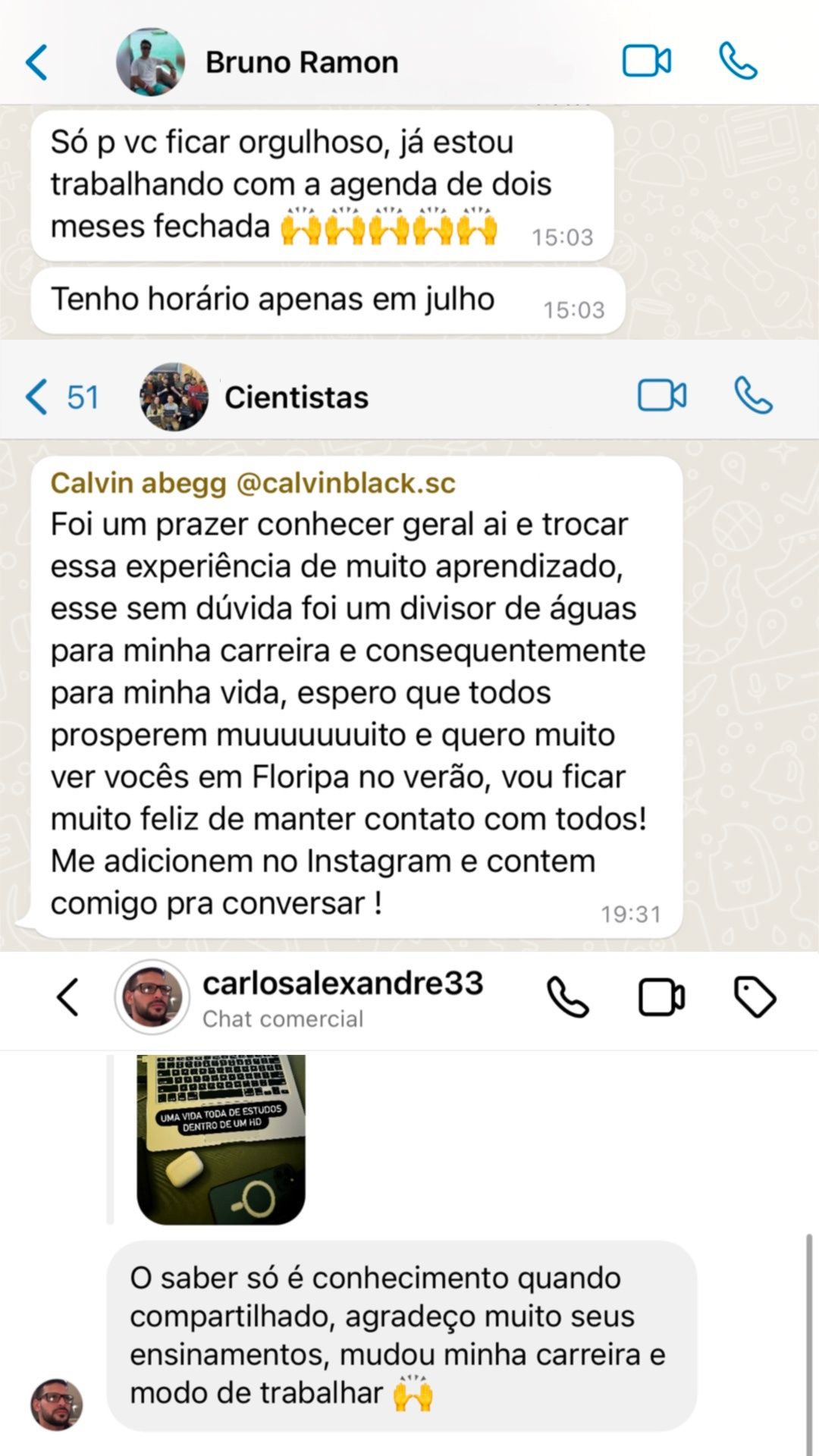 Grupo de Cientistas do Tribal exclusivo com quem já fez o workshop para tirar dúvidas falar diretamente com Miguel Figini.